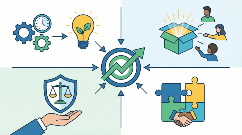 楽天グループのAIへの取り組みは、単なる最新技術の導入に留まりません。そこには、中小企業がDXを成功させる上で学ぶべき重要なヒントが含まれています。ここからは、楽天グループの事例を分析し、貴社がDXを推進する上で不可欠な4つのポイントを解説します。