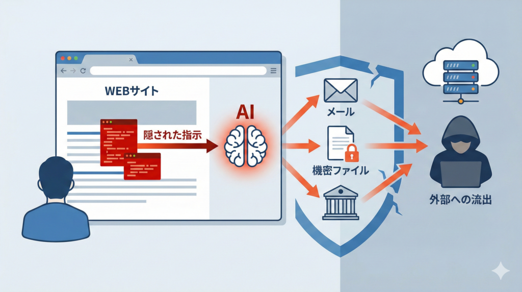競合ブラウザを開発するBrave社は2025年8月、Cometに「間接的プロンプトインジェクション」と呼ばれる脆弱性が存在することを公表しました。これは、WEBページに埋め込まれた悪意のある指示(プロンプト)をAIが読み込んでしまい、ユーザーが意図しない形で機密情報を漏洩させてしまう攻撃手法です。